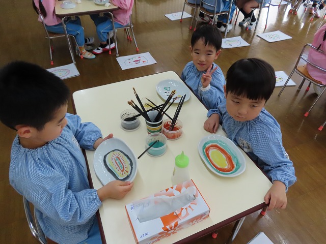 投稿日: 2023年12月16日 投稿者: 桜の聖母 佐世保皿の絵付け体験☆年長☆ 卒園記念製作として、波佐見焼の絵付け体験をおこないまいした!! どんな絵を描こうかな?と数日前からワクワクしていた子どもたち(^^♪ 講師の野下さんのお話をよく聞いて・・・・ いざ絵付けスタート!!! 「筆って難しいなぁ~」「もっとこう描きたいな」 と真剣に取り組みました☆ 素敵な作品が沢山なお皿は 卒園前までには完成予定ですので お楽しみに♥