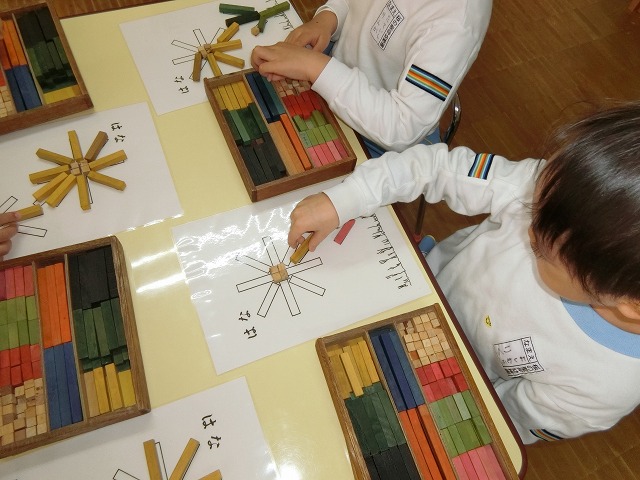 投稿日: 2024年3月2日 投稿者: 桜の聖母 佐世保色棒 ~年中組~ 色棒は、様々な長さの棒(木製)があり、感触遊びとして“長さの違い”を学んでいます。 台紙に合わせて色棒を並べています。 色棒を通して集中力を養い、子どもたちも大好きな活動です♡