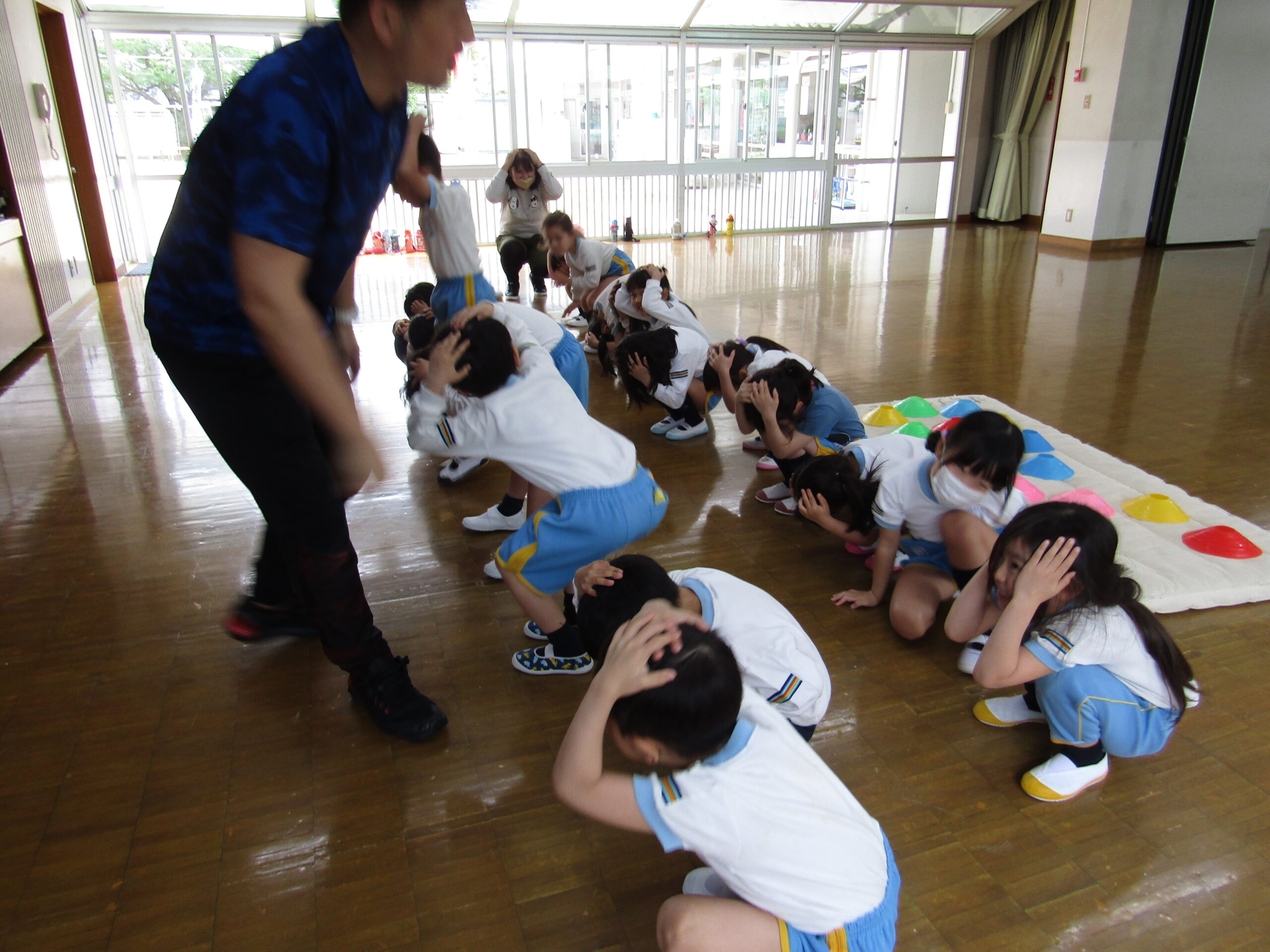 投稿日: 2024年4月27日 投稿者: 桜の聖母 佐世保年長スポーツクラブ 4月23日(火)に年長さんはスポーツクラブがありました! 始めに簡単なゲームを行いました! 『お~ちた おちた』『な~にが おちた』 『雷が落ちたぞーーー!!⚡』 みんな大慌てで頭やおへそを隠します(>_<) と~っても楽しそうな子どもたち(o^―^o) 仲間集めゲームでは、頭の上や足の下で手を叩いたり、スキップして移動しながら、笛の音をよく聞いて… 『ピー!ピー!ピー!』 『3回!!3人だーー!!』と 笛の数お友だちを集めました! 上手に仲間集めが出来ましたね(^▽^)♪