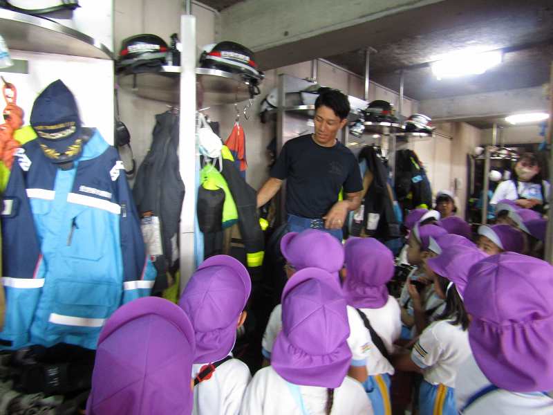 実際にホースを持ってみたり、救急車の中を見たり、貴重な体験ができました♪