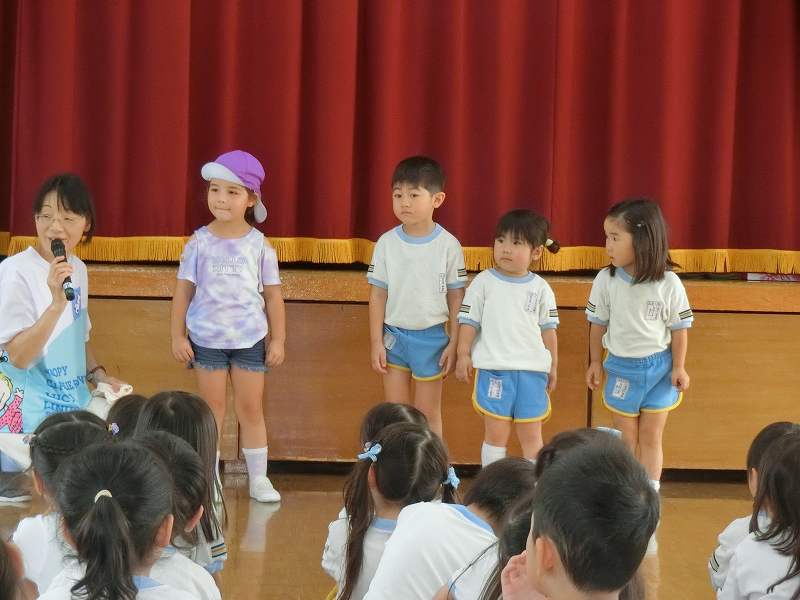 投稿日: 2024年7月24日2024年12月25日 投稿者: 桜の聖母 佐世保1学期終業式 7月19日(金) 1学期終業式をプレイルームで行いました。 4月と比べると、すっかりお兄さん・お姉さんのお顔になっていましたよ(*^_^*) そして、1学期で退園されるお友だち、退職される先生方がみんなの前で 挨拶をしました。 寂しくなりますが、新しい環境でも頑張ってくださいね! そして、いつでも幼稚園に遊びに来てくださいね♪ みんなが楽しみにしていた夏休みが始まりましたね! 怪我や病気に気を付けて、楽しい夏休みになりますように…☆