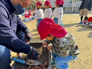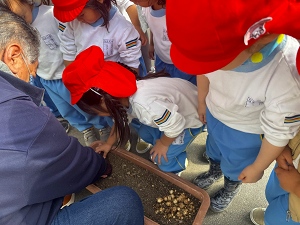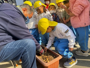 投稿日: 2025年12月13日 投稿者: 桜の聖母 佐世保球根を植えたよ☻ 12月11日(木)たんぽぽ・ちゅうりっぷ・さくらんぼ組で球根を植えました。 球根は、チューリップ・ムスカリ・ヒヤシンスの三種類を植えました。 深江さんに、植え方を教わりながら優しく土に入れ砂のお布団を掛けました。 春に素敵な花が沢山咲きますように…♡ みんなで、水やりを通して生長を観察したいと思います。