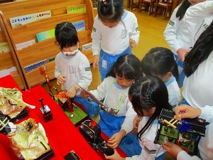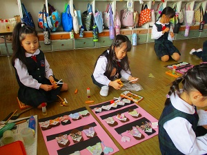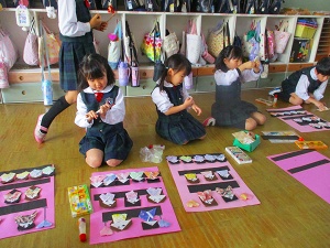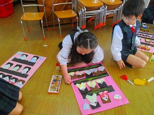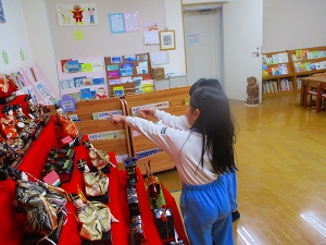 投稿日: 2026年2月14日 投稿者: 桜の聖母 佐世保お雛様を飾って、製作しましたよ🎎 ゆりぐみ お雛様を飾りました。説明書を見ながら「ここだよ!」「太鼓を持っている五人囃子はここだよ」等…飾っていきました。流石!ゆりぐみさん!完璧💮飾り終わったら、次は、製作に取り組みました。自分だけのお雛様の完成も、もう間近か…頑張ります!