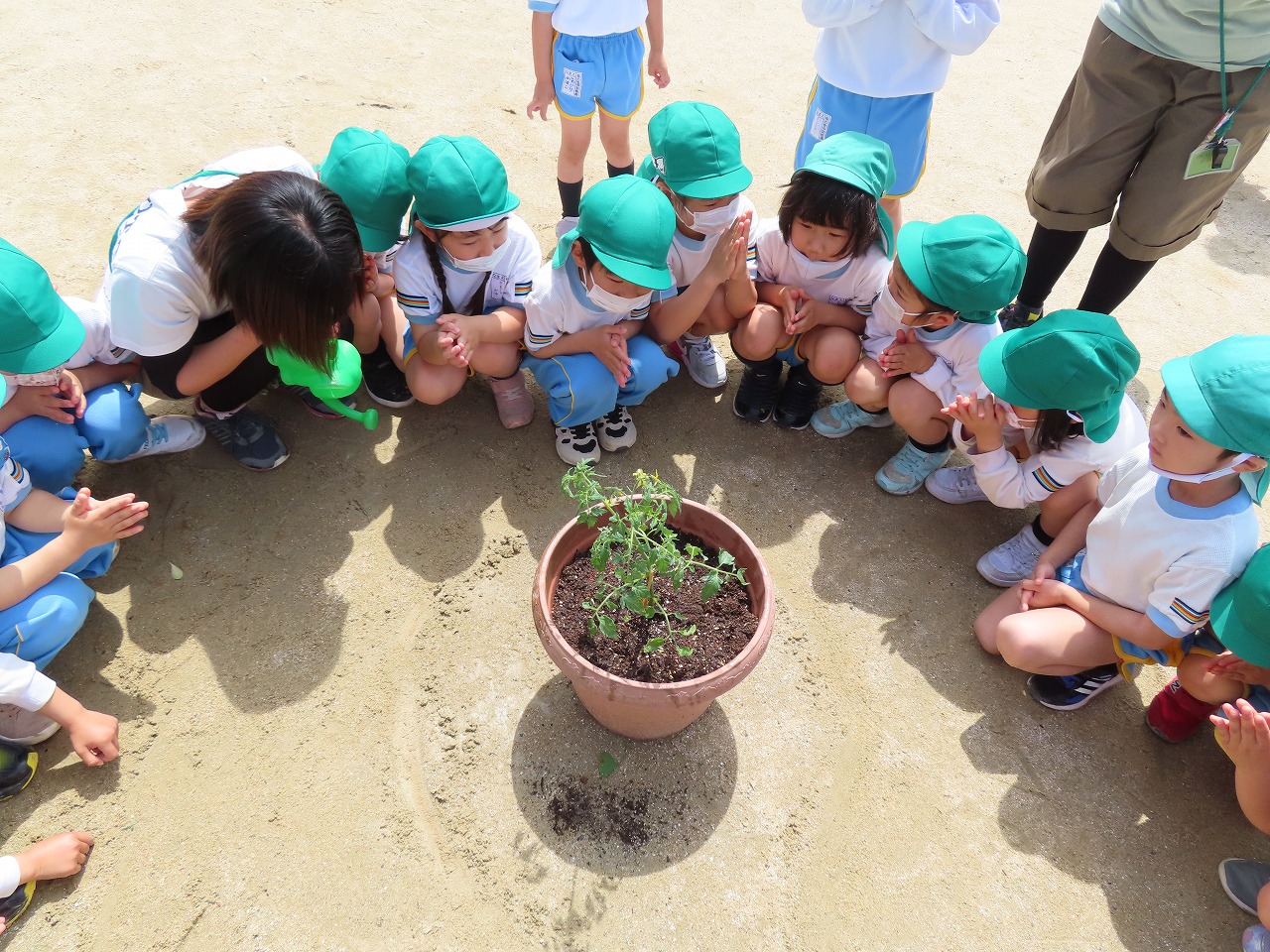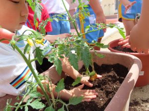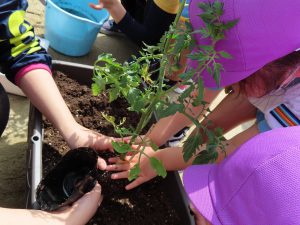 投稿日: 2022年4月30日 投稿者: 桜の聖母 佐世保トマトの苗を植えたよ♪ 4月27日(水) どんなトマトができるかな~とワクワクしながら 年中児と年長児でトマトの苗を植えました(*^_^*) 最後は「大きくなあれ!大きくなあれ!」と言いながら お水をあげましたよ♪ 美味しいトマトが沢山できますように…☆