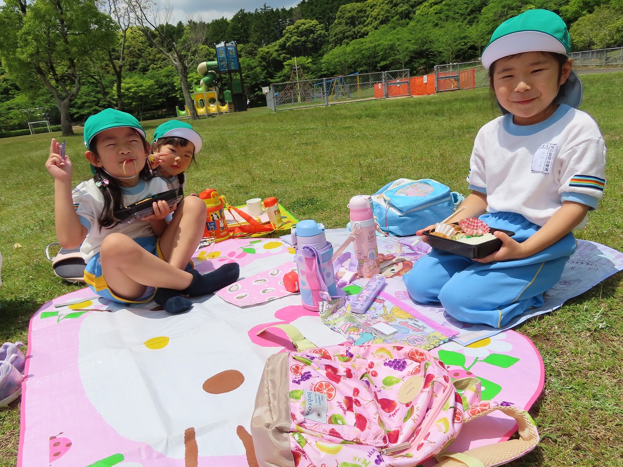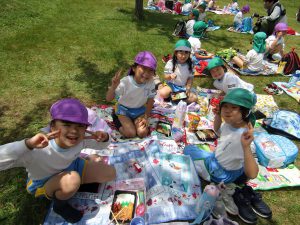 青空の下で食べるお弁当は、とっても美味しくて嬉しい気持ちでいっぱいでした(^^♪