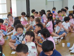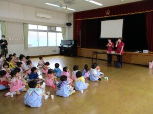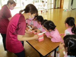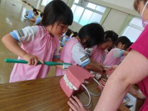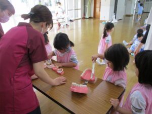 検診後は、年中児・年長児対象にブラッシング指導がおこなわれました。
